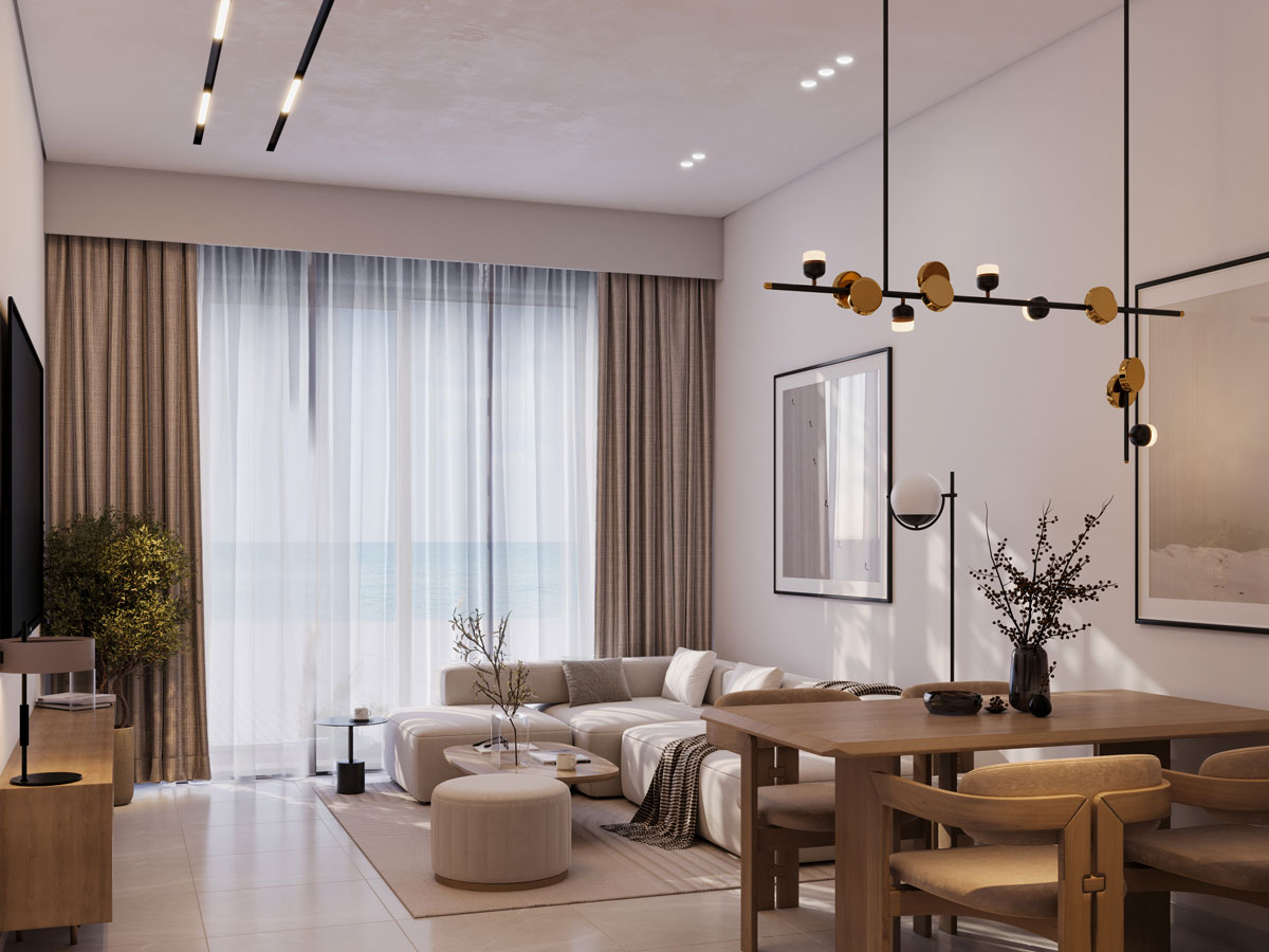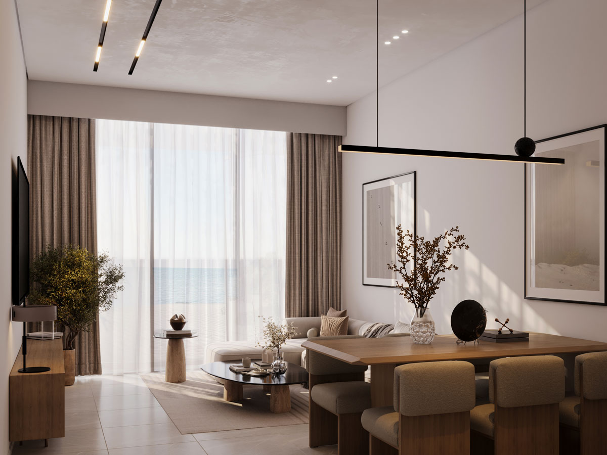 Each residence is designed with spacious layouts, floor-to-ceiling windows, and private balconies that maximize natural light and offer uninterrupted sea views. Interiors feature modern finishes, soft natural tones, and high-quality fittings, creating a refined and relaxing living environment.